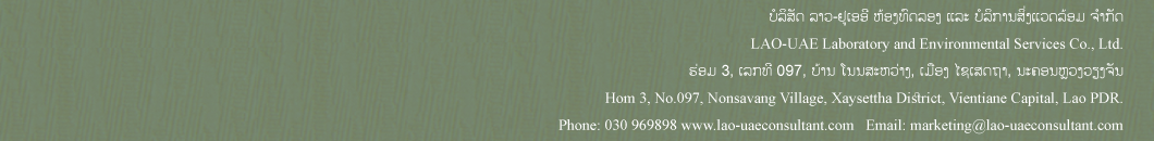 LAO-UAE Laboratory and Environmental Services Co.,Ltd. was established and registered in Lao People’s Democratic Republic in 2017 with the aim to provide high-quality environmental laboratory testing, and training services to government agencies, private entities and communities in Lao PDR.